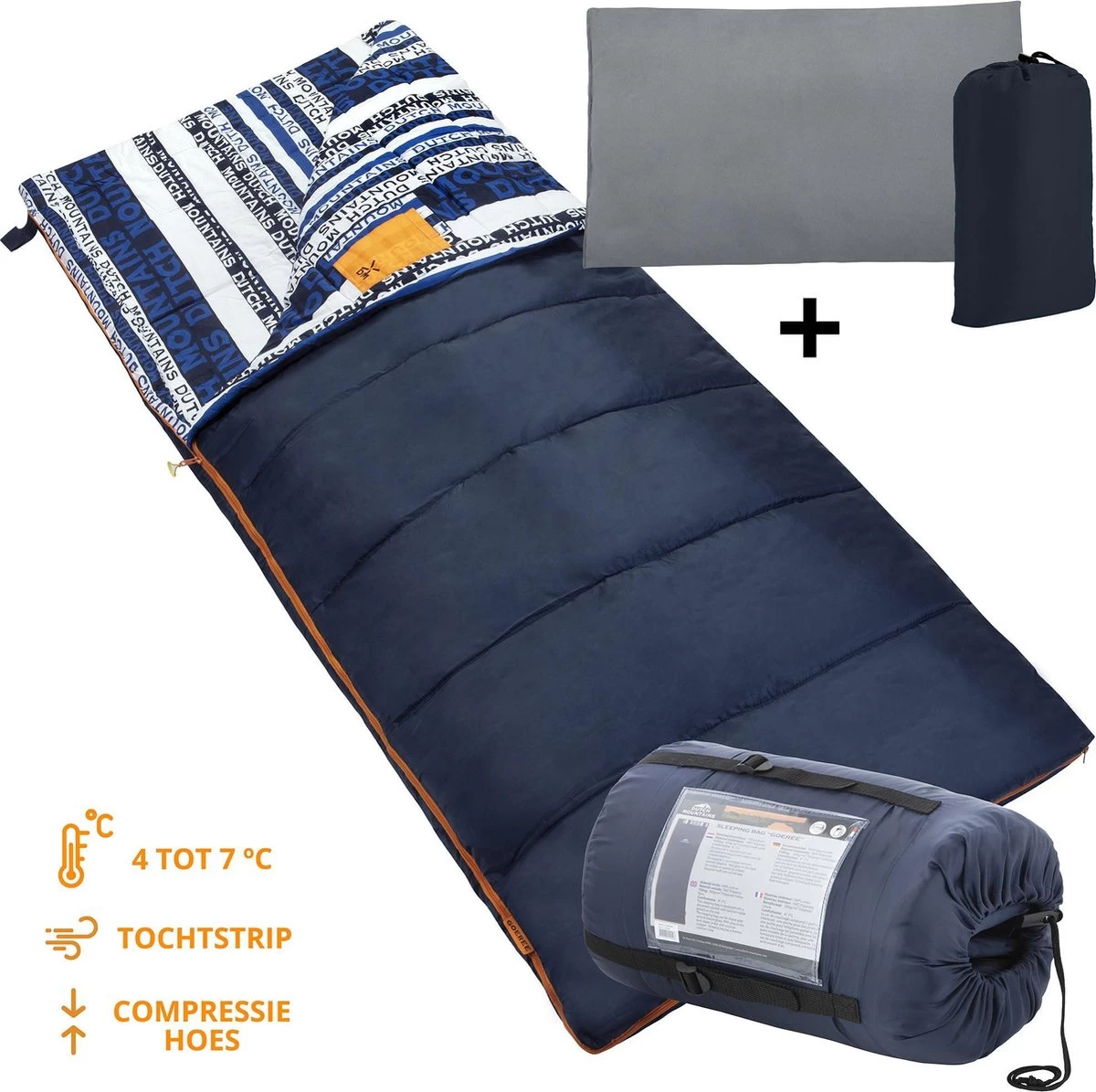 Dutch Mountains Slaapzak Goeree XL – Kussen 25x15cm – 220x90cm Katoenen Slaapzak – Tochtstrip