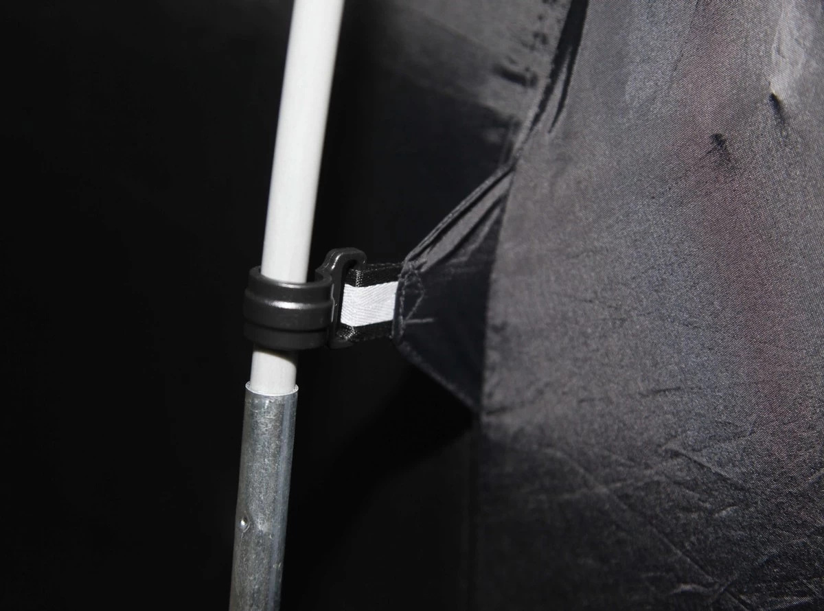 De 8 organizers, 4 opbergvakken in de binnententen en lampenhouder verhogen het comfort. De leefruimte beschikt voorts over een folievenster, muggengaasvenster en wegneembaar, eenvoudig te reinigen grondzeil. De deur van de ingang kan gebruikt worden als zonneluifel (luifelstokken meegeleverd), ideaal bij warme dagen. De 2 tegenover elkaar liggende vario ventilaties zorgen ook bij regenweer voor een goede luchtcirculatie en een rustgevende slaap. Hou de ventilaties daarom ook altijd open. De tent beschikt over sterke ritssluitingen en reflecterende scheerlijnen voor meer zichtbaarheid. De zeer stabiele 5 mm staal-grondpennen gaan niet buigen bij een harde ondergrond. Voor het afspannen van de tent en het vastzetten van de scheerlijnen zorgen speciale 5mm staal-grondpennen met haken voor een betere grip in de grond. De afdekflap van de ritssluitingen heeft een regengoot die het indringen van water verhindert. De binnentent is uitgerust met de High Peak Vario Vent Control: de muskieteningang houdt vervelende insecten uit de tent en kan van binnenuit variabel bediend worden a.h.v. een afdekflap. Deze berg je makkelijk op in het daarvoor voorziene vak. De 2 hoge ventilaties verluchten de binnentent ook bij gesloten Vario Vent Control.