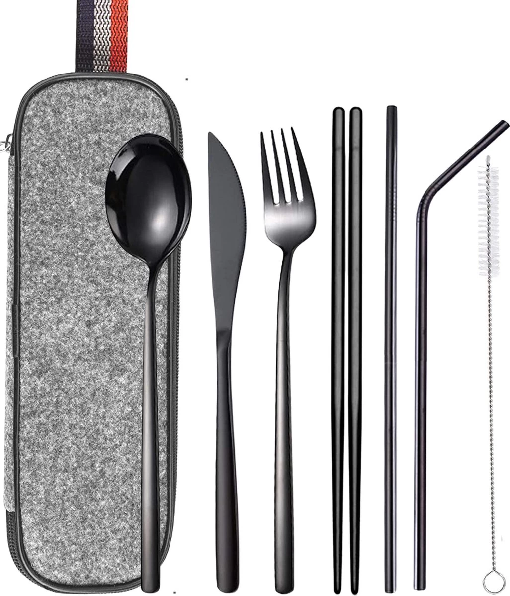Zwart RVS Reisbestek- 7 Delig